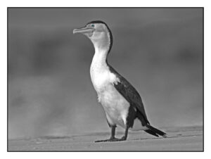- 24 Resting Shag 1 B&W eliminates distractions and adds emotion and mood, and this image has plenty of drama. This is pin-sharp where it needs to be. The bokeh effect is visually pleasing in the out-of-focus areas of the photograph, and you did a good job controlling your depth of field. The photographer should always check exposure settings, as the area across the bird’s chest is slightly blown out, losing detail in the feathers. If in doubt, always slightly underexpose. M