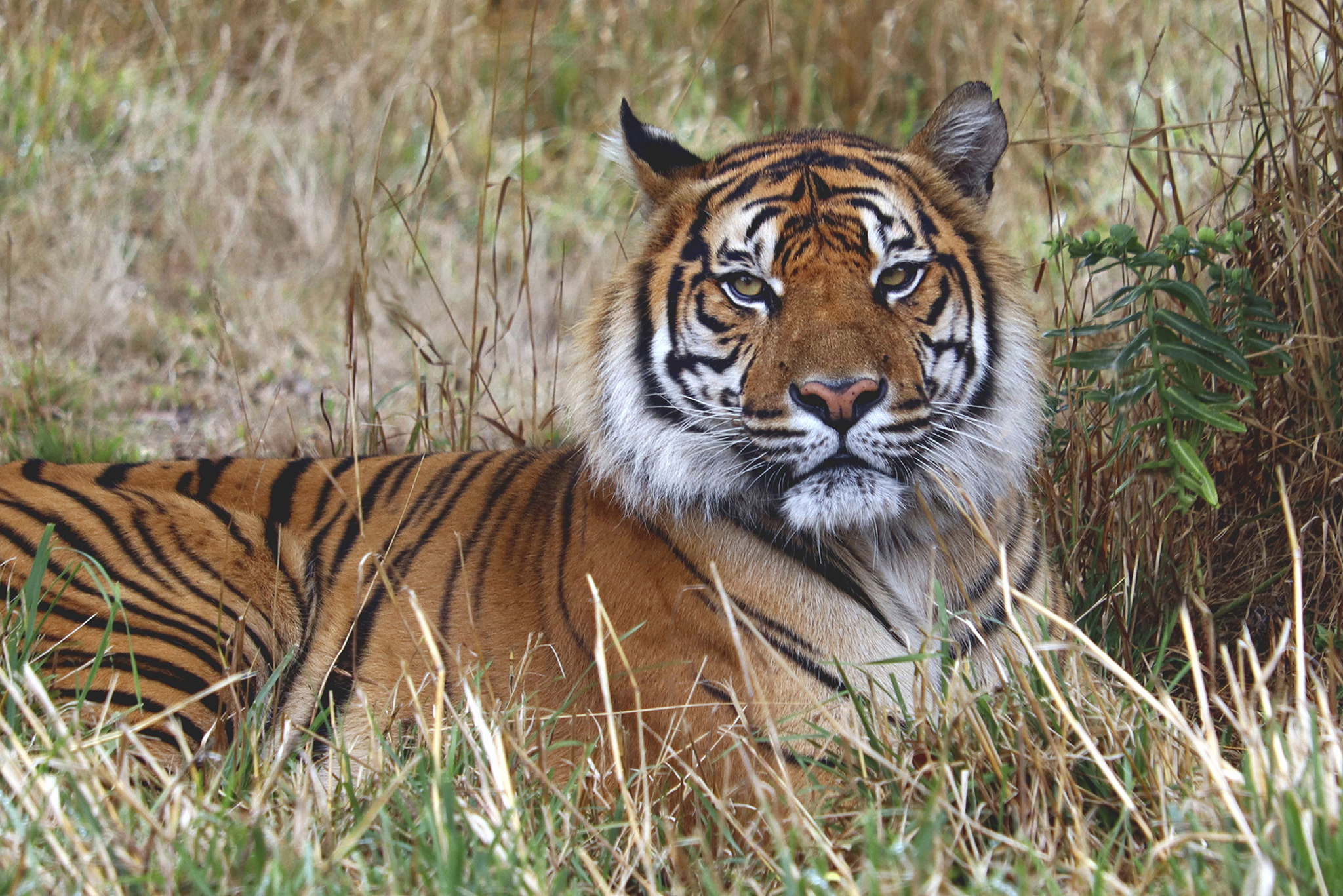 - 03 Magestic Observer Shooting from a low angle makes this image pop, as the hazel-eyed tiger glares directly into the viewer’s eyes. Almost an inquisitive stare, are we next for lunch? It’s pin-sharp, with colours vibrant and true to life. The exposure is balanced, bringing out the details in both highlights and shadows. A lovely portrait of a Bengal Tiger. M