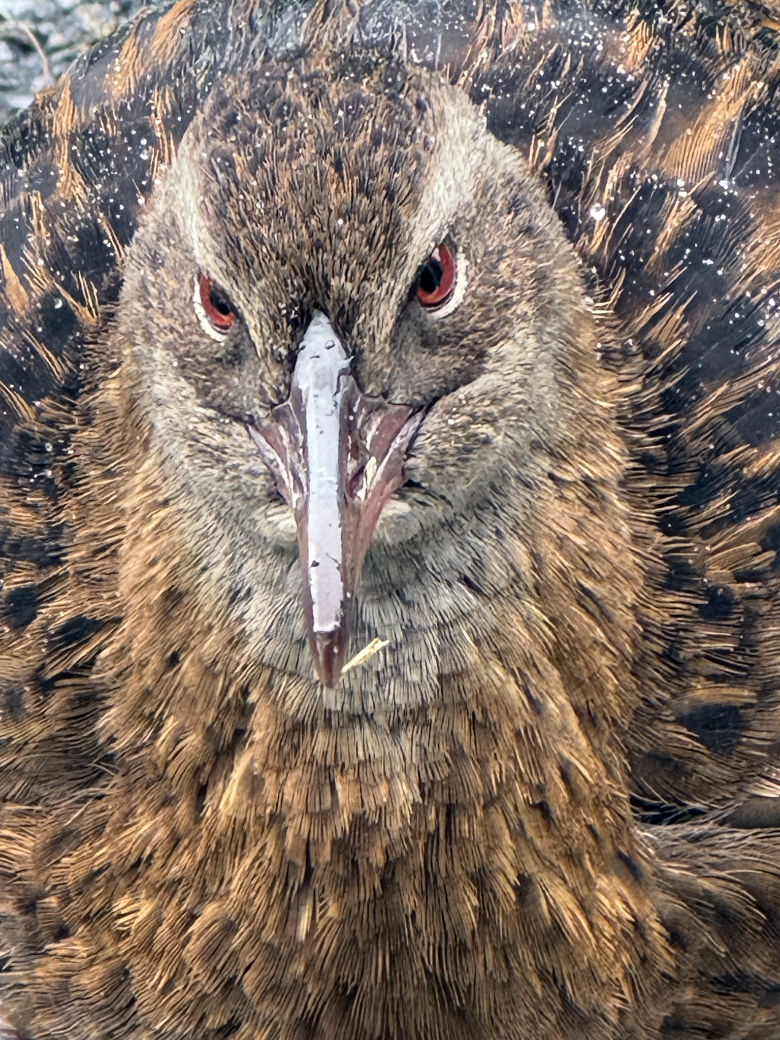 - 10 Weka Close up As noted earlier, shooting from the correct angle can make or break a composition. This composition works because we get to view a native bird with water droplets, which creates a pleasing effect, and it’s sharp. However, the wet reflective beak draws the eye and dominates the subject. A