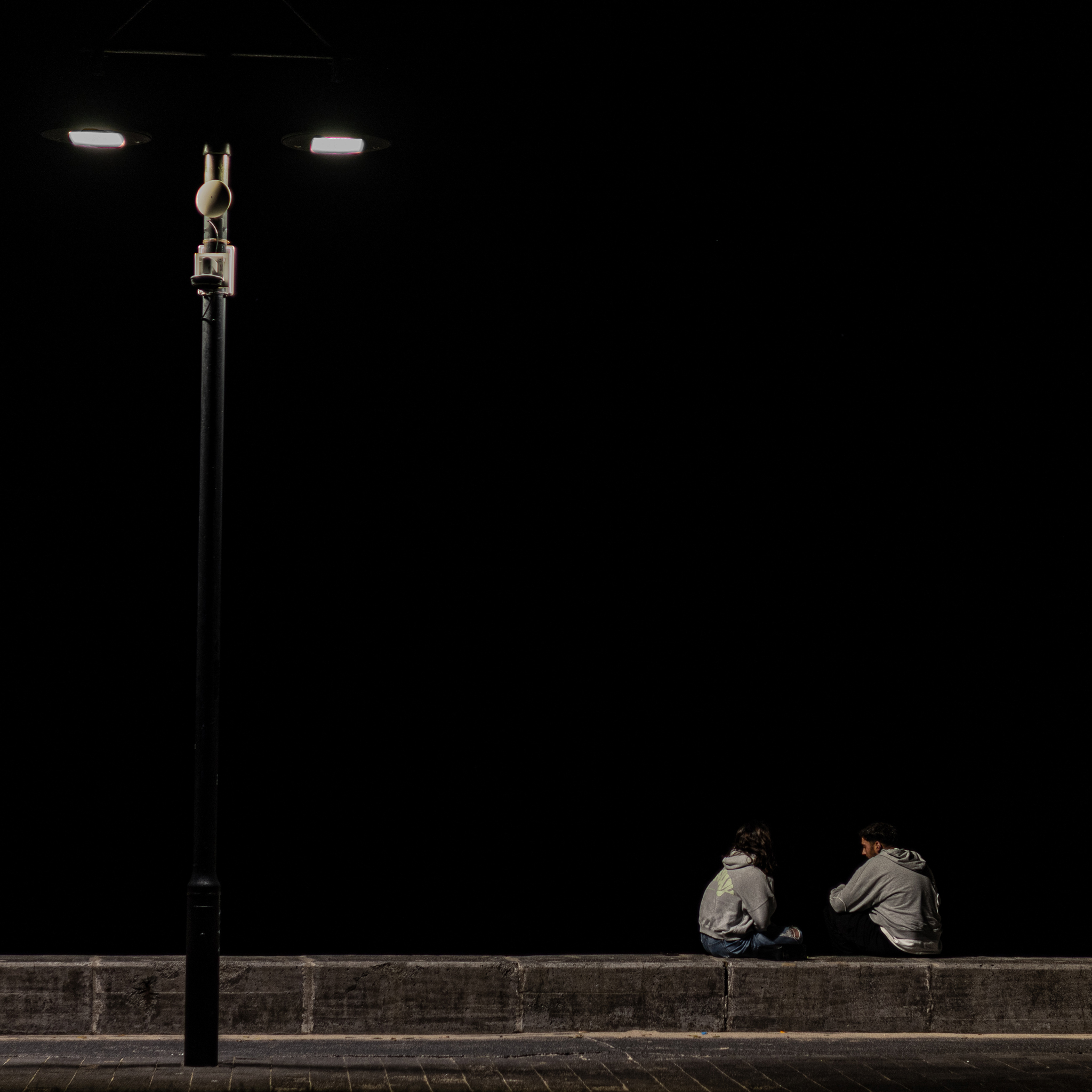 - 16 Nights Conversation The streetlight reveals a conversation between two young individuals. It’s evocative, conjuring up memories, moods, or images—a sense of nostalgia. In this scene, the negative space enhances the emotions expressed in their conversation. The composition is well done; however, a band of dimly reflected light above the street lamps is distracting. The author might try editing this line out and see if they prefer the image without it. H Winner