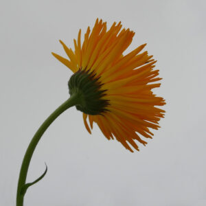 - 01b_Marigold Magic – This has an interesting view of the back of the marigold which is leaning away from the viewer. I love the inclusion of the tiny leaf on the stem. The photograph is so sharp that the tiny hairs show up as well as an insect on the petals. Having the stem come from near the corner, but not right in the corner makes this a pleasing well constructed photograph. Does it seem to you that the exposure could do with an increase because the background is grey and would look better white? It would also show more detail in the back of the marigold and punch up the colour. Highly commended