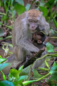 - 2a Feeding Time – This an interesting portrait of the monkey and her baby, and the focus on them is good. Did she look up at you at any stage as that would have connected her to the viewer? Although you have included them in the overall scene, I feel that the background and the leaves in the front distract you from the relationship of the mother and her baby. Would you consider zooming in so that the photograph was about their relationship-their two heads and her lovely silvery hair. Merit