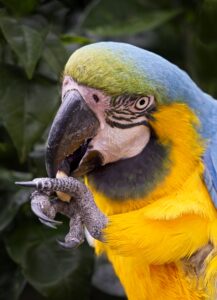 - 03c_Snack Zone – I love the vibrant colours of the cheeky parrot. You have zoomed up into the detail of him eating a nut and excluded any unnecessary background. And what you do have as the background recedes because it is softly out of focus. The photograph is all about the food, his eye and the colour. Everything is sharp and it is a happy appealing photograph. You have achieved what we often miss when we include more than what is the story. Honours As a set you have placed your two vertical photographs either side of the middle shape which creates a good balance. You will see that the exposure of the tree doesn’t blend well tonally with the other 2 photographs.