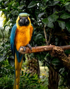 - 05a_Macaw – The McCaw’s are a lovely bird to photograph. Wonderful colours and they are so curious that they remain still to keep an eye on you. The bird’s feathers are sharp. They have such a long tail, and it is easy to cut this out as you have done in this photo. The answer to this problem would have been to crop so that you just include his feet but also crop in from the sides and top. Then it is all about the bird. If you chose a shallower depth of field the background would have been less intrusive. Then perhaps try dropping the highlights. Merit