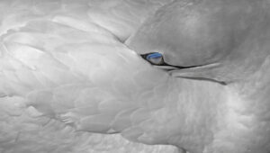 - 06a_Gannet Blue Eye – What an interesting and different photograph of a gannet. Very cleverly observed. Almost a high key feel with the pop of blue. Even more effective with its eye being on a third. You have made it all about the bird’s eye. Honours